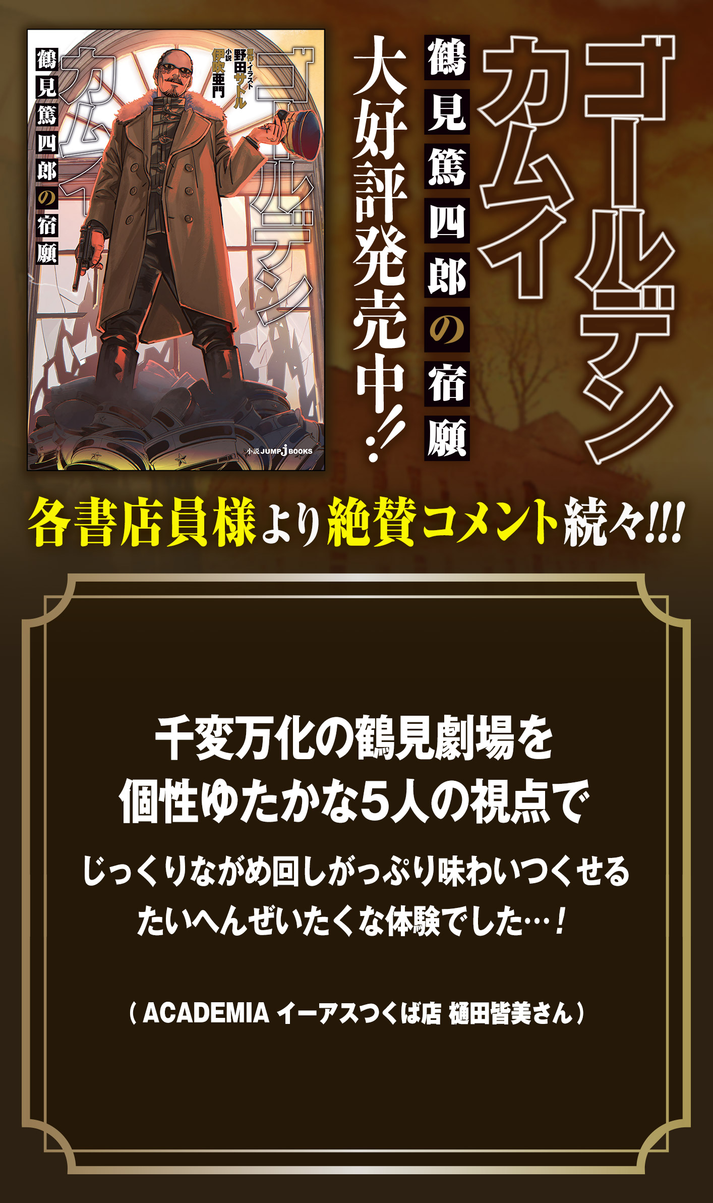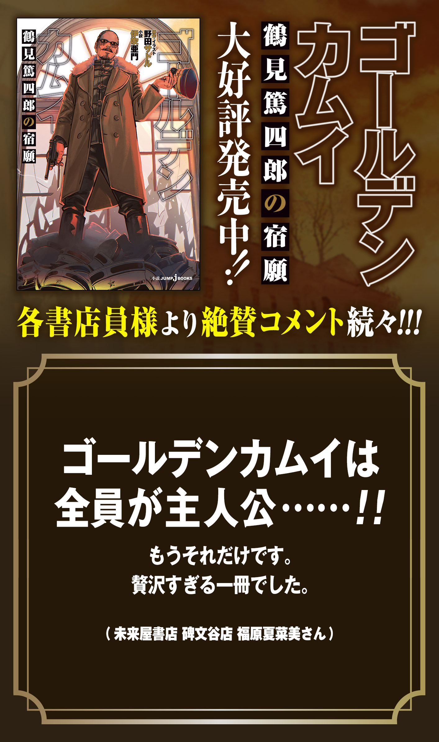 日露戦争のさなか。戦場という巨大な密室では、正気を失うことこそ美徳とされる。鶴見中尉と第七師団の面々が出会った、驚くべき事件の数々とは......。日露戦争での第七師団を描いた、初のスピンオフノベライズが刊行!!野田先生による描きおろしイラスト多数!!